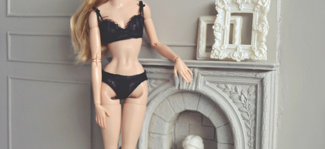 Y ya a modo de despedida, además de desearos pericia y mucha suerte si lo intentáis, los datos de la ropa de las fotos: el conjunto de lencería negro es de la Fashion Royalty Ombres Poétique Mademoiselle Jolie. En esta última foto, los pantalones rosas son de DRESS, el suéter de Clear-lan y el pañuelo de Victoria Barbie Designs.