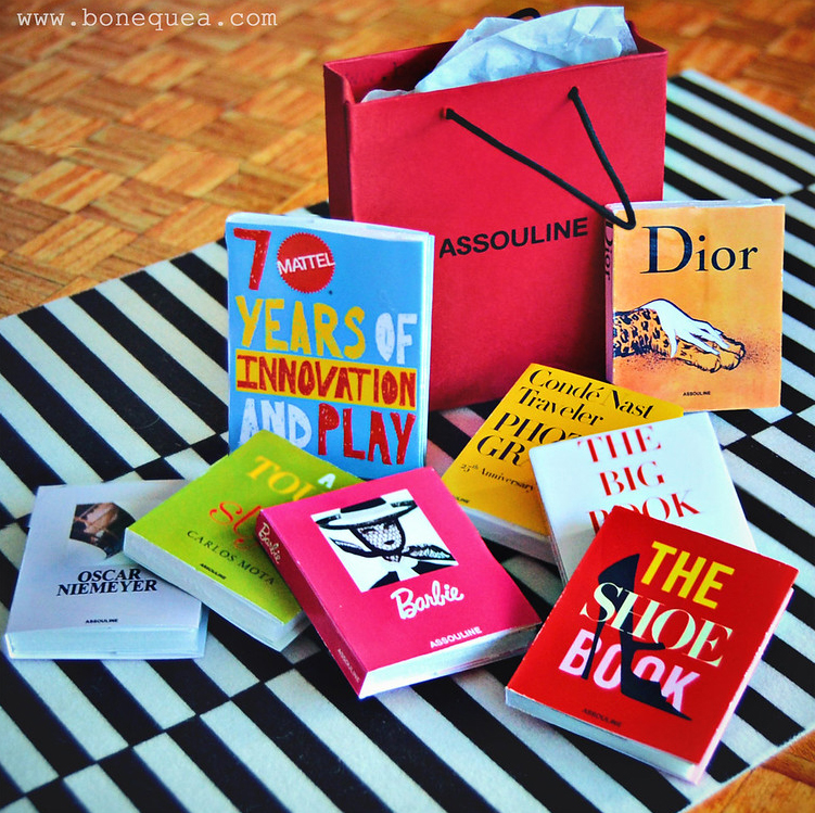 Ya hace un tiempo (agarraos los machos y sentíos mayores, nada más y nada menos que ocho años), compartí por aquí el imprimible de libros en miniatura de la editorial Assouline, aprovechando que había sacado varios títulos vinculados a Barbie y a Mattel y que, además, sus portadas quedaban de lujo en cualquier diorama. En estos últimos años, esta colaboración ha continuado y no hay duda de que sus libros se usan como elemento decorativo en casas reales, tal como se puede constatar con una pasada rápida por Instagram o Pinterest.
